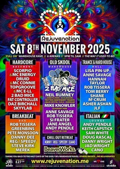 Get ready to step back in time and experience the *golden era of rave* like never before! 🎶 We're bringing you the biggest *Old Skool, 90's Anthems, Hardcore & Acid* bangers, delivered by an *INSANE* lineup of legendary DJs!