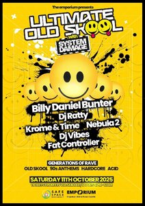 ULTIMATE OLD SKOOL The Rave Youve Been Waiting For System Damage X Emporium present Ultimate Old Skool Acid, 90's Anthems, Old Skool, HardcoreFlyer